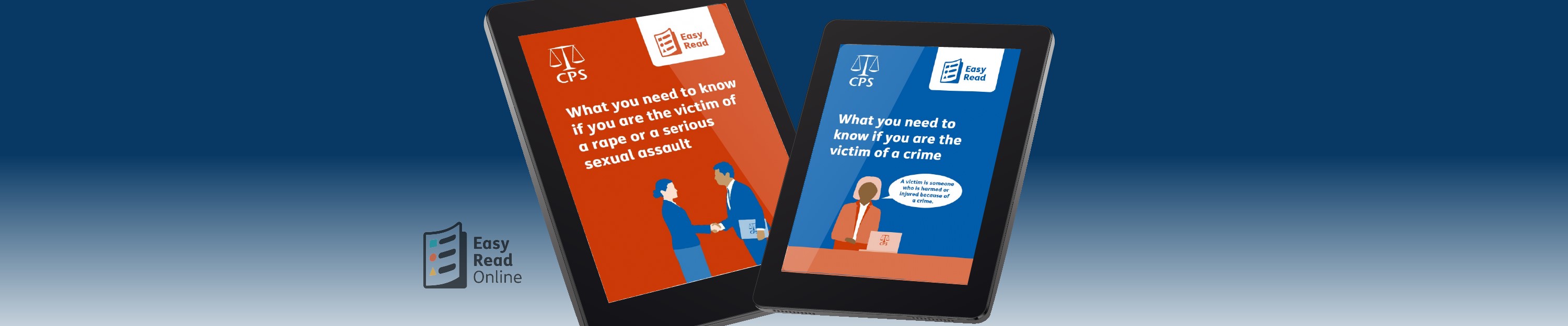 We also have Easy Read versions of these guides. These booklets use easier words and pictures. They tell you what you need to know if you are the victim of a crime. A victim is someone who is harmed or injured because of a crime.
